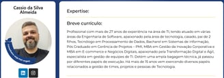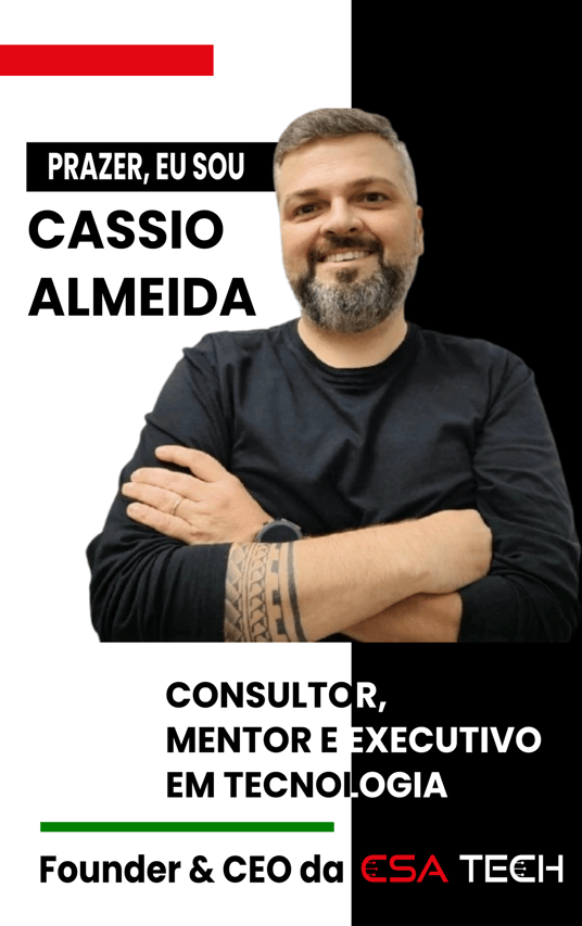 Cassio S. Almeida Profissional com 27 anos de experiência em tecnologia, ex-CTO/CPO, mentor e apaixonado por transformação digital. Já liderou times com mais de 190 pessoas e ajudou empresas a se transformarem com agilidade, inovação e resultado.